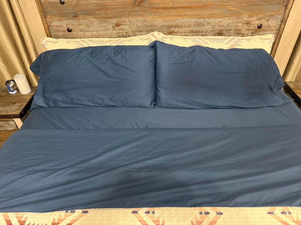 In the top photo of the bedding, blue symbolizes tranquility as well as water and sky which are typically associated with peacefulness. In the bottom photo, the blue in my old service jacket symbolizes professionalism and loyalty.