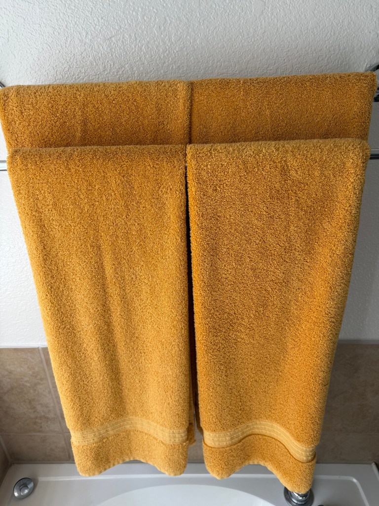 In the top photo of the vest, yellow symbolizes happiness, energy and thoughts of being outside in the wild. In the bottom photo of the towels, yellow symbolizes warmth, happiness and thoughts of a cleansing shower or bath at the end of a long day.